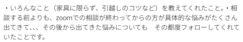 - ヒアリングシートの回答ではつかみきれなかったことは、LINEで追加質問し、お客様の考えやニーズの把握を心がけています。(ちょっと雑談になることも…)