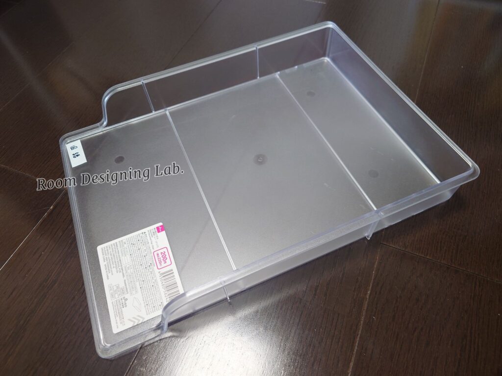 DAISOの積み重ねできるA4書類トレー(クリア)。