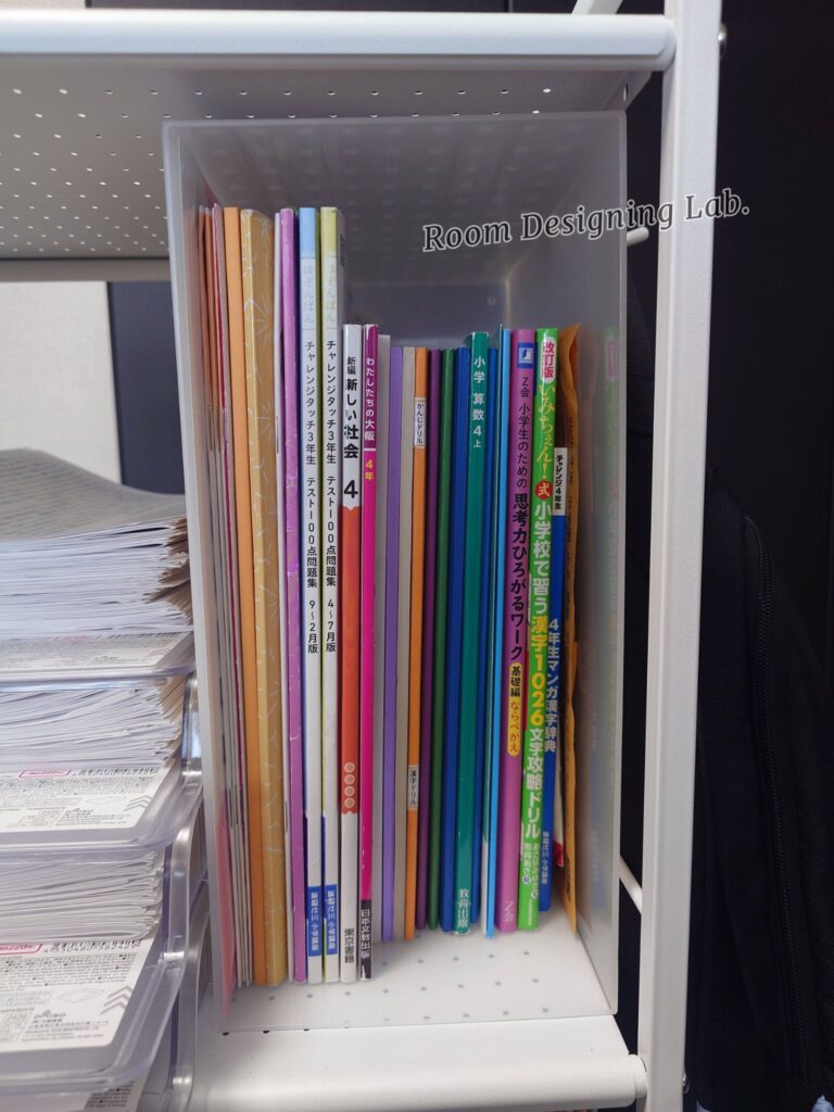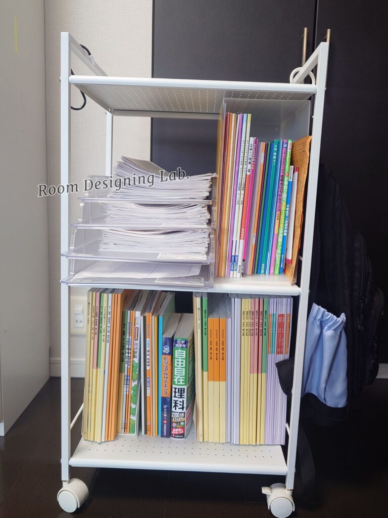 そこから数年たって高学年になり、塾のテキストもプリントももりもりと増えてきましたので、重い腰を上げてランドセル置き場も含めて見直すことにしました。